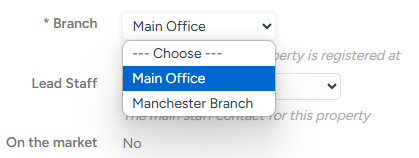 You can easily move properties between branches. To change the branch simply edit the property and select the new branch from the drop down on the property details page.