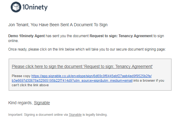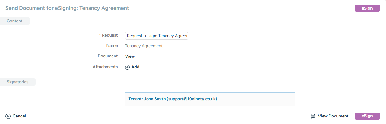 In the example below we are sending a Tenancy Agreement for eSigning.