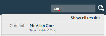 The search box in the top right-hand corner of every page allows you to perform a quick search for any contact, property or letting in the system.