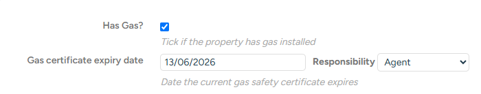 As well as indicating when the certificate expires, you can also indicate who is responsible for renewing it (yourselves - the agent; the landlord, or a 3rd-party supplier).