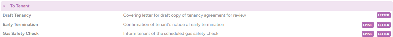 These master templates can be edited, and new templates can be created. It is also possible to edit the templates for a particular property or contact, so that the changes made only apply to that property/contact (all other properties/contacts will continue using the master template).