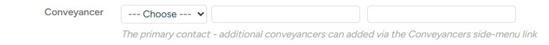 - Enter the first/primary contact at the firm in the Conveyancer field: