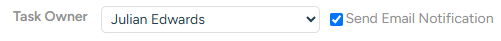 By default, any task created will be owned by the member of staff creating the task, but if the task is for another member of staff (for example, a callback message), simply change the task owner to that staff member. The system will then send an email out, informing them of the task assigned to them: