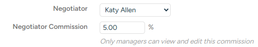 Managers have the ability to set the commission % that has been agreed with each negotiator. NOTE - only managers can see this %.
