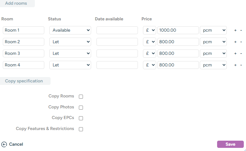 When you need to market rooms at the property as being available, you do so through the single property, with the rent on the property set as the room level rent (an indicative rent if the rooms rent out at different rates). The room availability can be specified manually in the marketing description for the property.