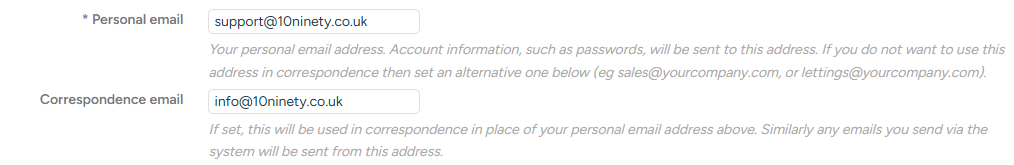 The staff email address used will be the "Personal email" address on your staff entry in the system, unless the "Correspondence email" is provided.