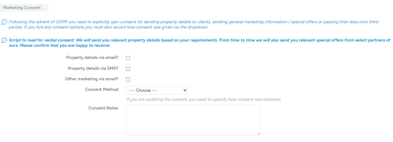 However, if you did not fill in their search criteria at this point then you can set-up their property search separately from the Property Searches link in the menu on the right, or from their dashboard and the Add link on the Searches widget.