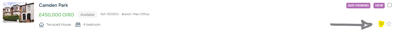 If the applicant has said they are not interested in a particular property and you would like it to be excluded from print outs or future emails of the results you send, then you can click on the ignore property icon on the right of each property match.
