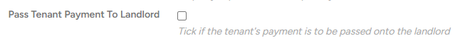 - Tick the ‘Pass Tenant Payment To Landlord’ box.