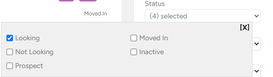 a. Status of looking - click on the 'Status' drop down and tick 'Looking':