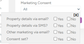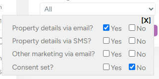 d. Currently set to receive 'Property Details via email?' - click on the marketing consent drop down and tick 'Property details via email?':