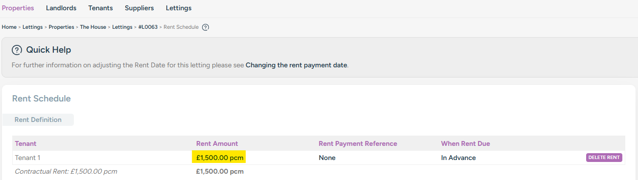 To do this, go to the 'Rent Schedule' from the right-hand Letting Menu.
