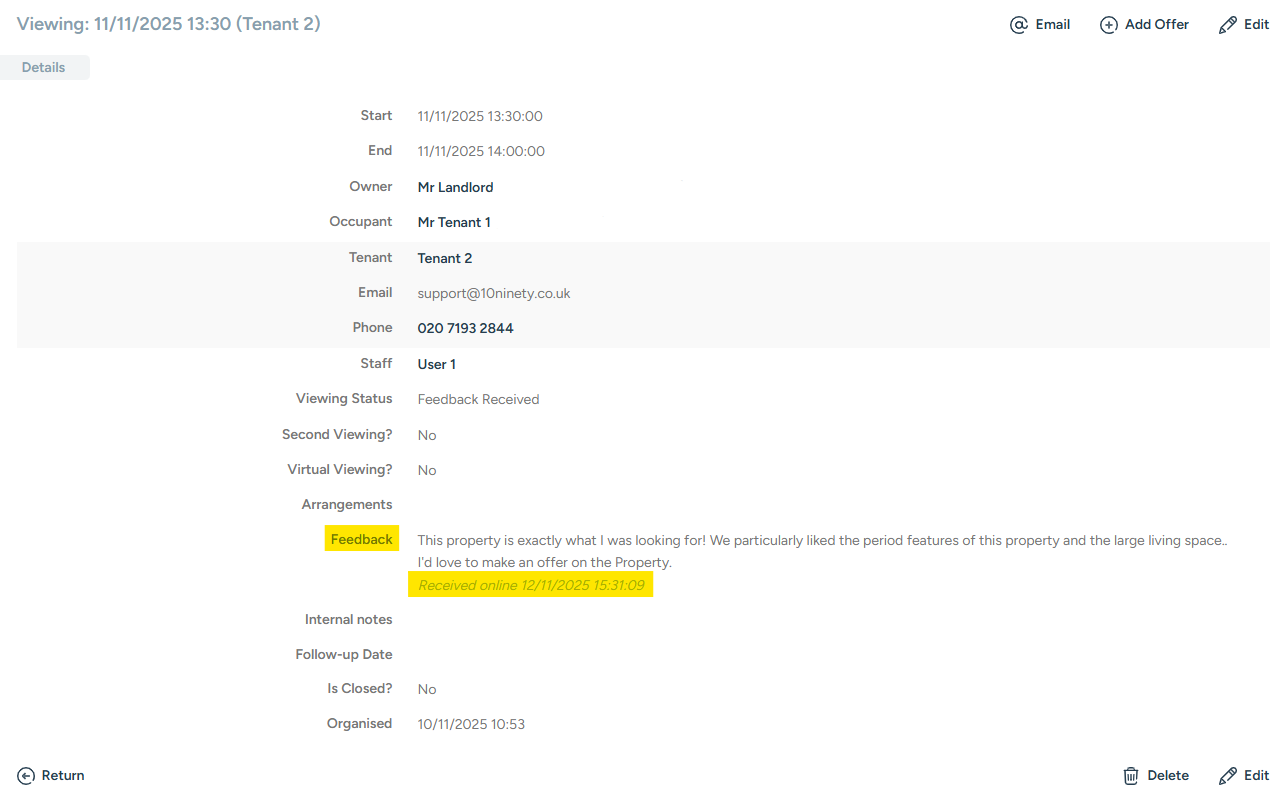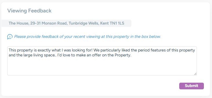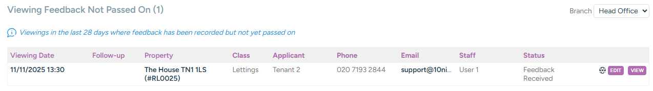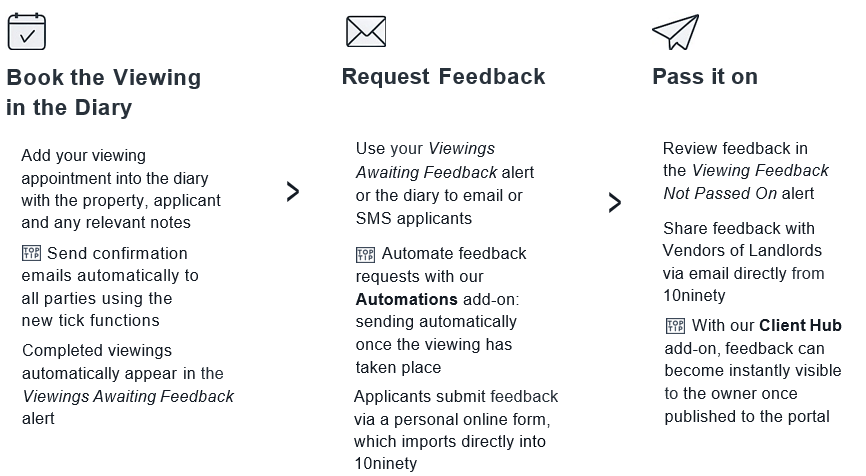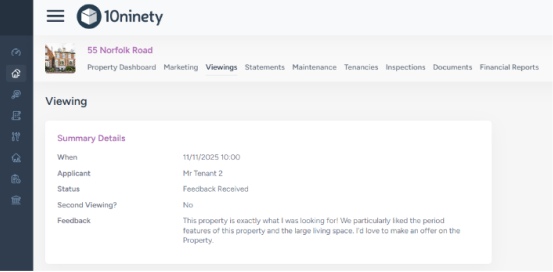 Once received, viewings will move into the Viewing Feedback Not Passed On alert for you to review across your properties.