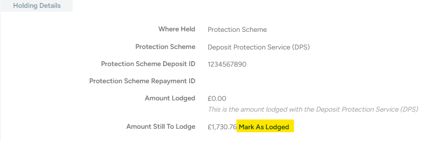 You can also set the holding location of the Deposit, alongside the relevant Protection Scheme you plan to register and protect the Deposit with.