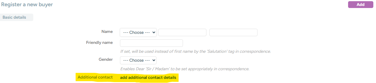 On the buyer record, a second buyer can be added by clicking on 'Add additional contact details' either when setting them up as a new contact or by clicking 'Edit' on their record: