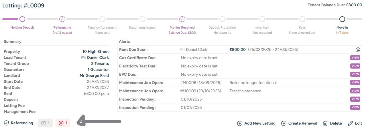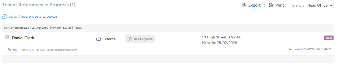 All your open tenant (and guarantor, if required) references in progress will appear in the Tenant References In Progress alert.