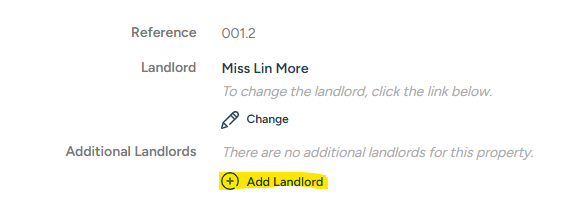Then you would add the property as normal, using one of the landlords as the "main" or "lead" landlord. Once added, go to 'Property Details' on the right-hand side 'Property Menu'. You will see an option to 'Add Landlord' that will allow you to choose from a drop-down list of landlords uploaded to your system.