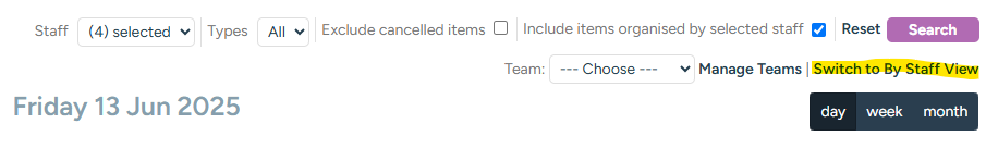 Users can set a default team on their staff details page – the branch diary will then default to showing appointments for that team when they click onto it.