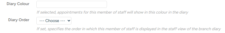 You can also choose the Diary Order here - the order that staff members show in the "by staff" view, alongside the Default Diary Team - choosing this allows you to see only the diary for the team members that are relevant to the staff member, as explained above.